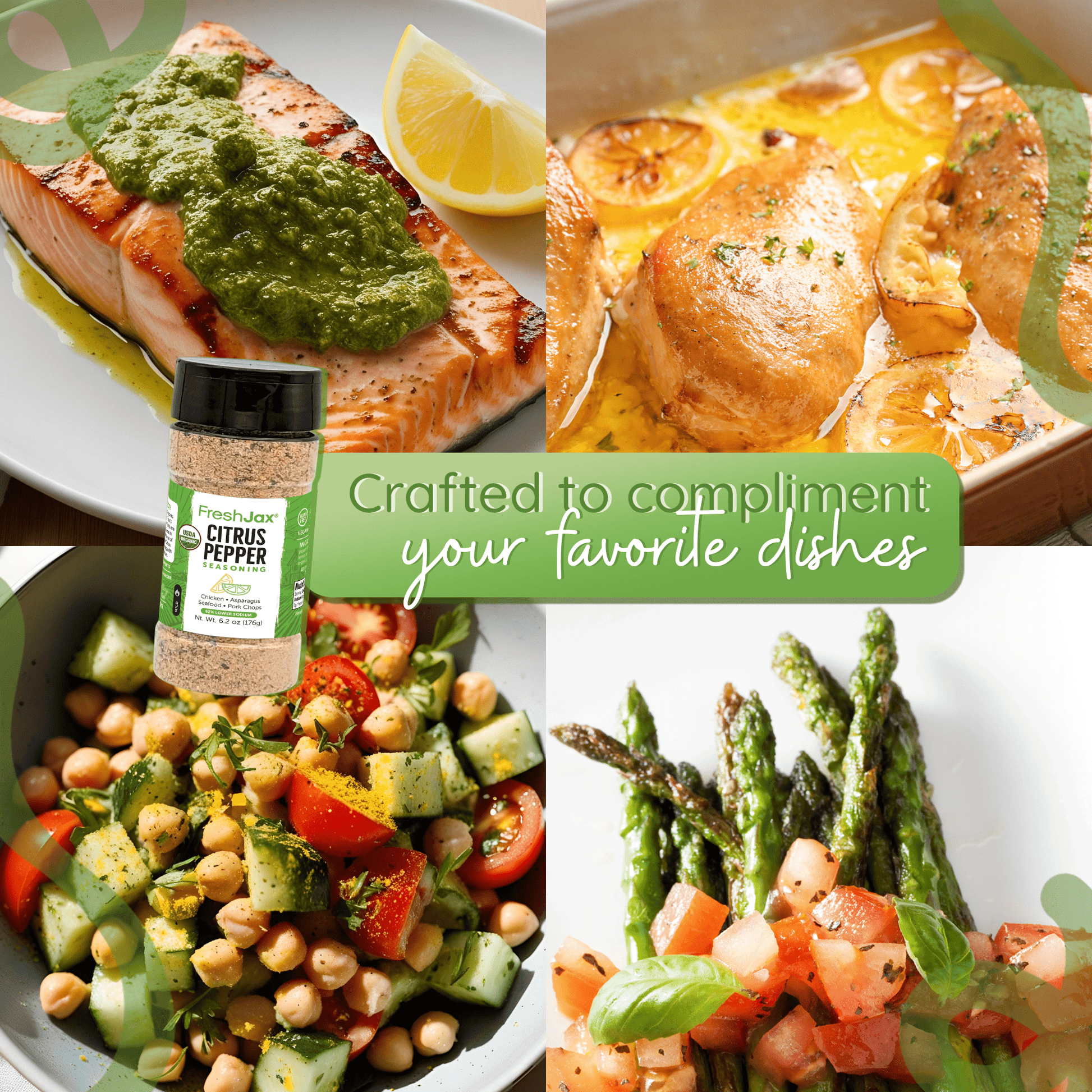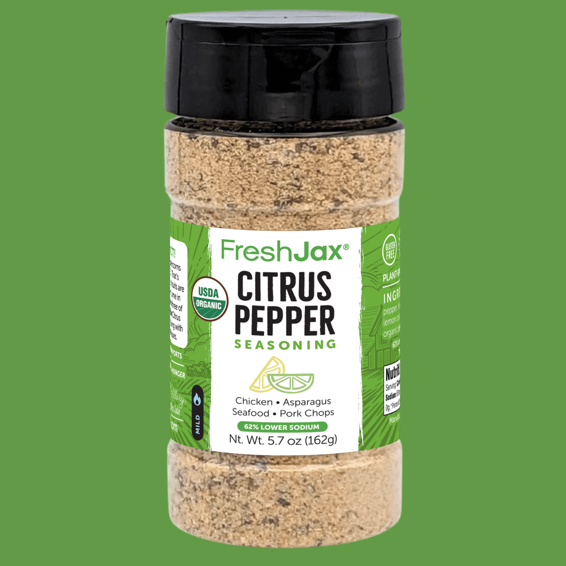 Why settle for just lemon when you can have a bright, bold fusion of citrus? FreshJax® Citrus Pepper Seasoning combines organic lemon, lime, and orange peel with four types of peppercorns to deliver a balanced burst of flavor that’s citrusy, peppery, and irresistibly fresh. It’s a flavor upgrade made for foodies who love to keep things interesting.