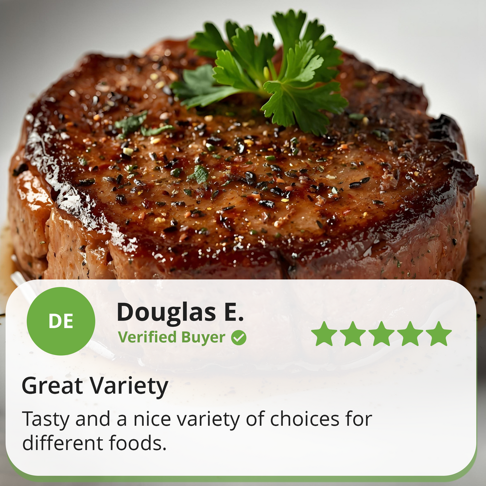 🍔 Grill Master® (1.3 oz / 37 g) The ultimate burger seasoning with black pepper, dill, and paprika. Your friends will crown you the grill master.
