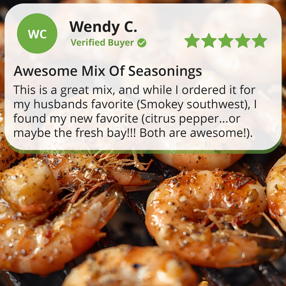 🌊 Fresh Bay (1.5 oz / 43 g) A coastal classic. Perfect for seafood, shrimp boils, roasted potatoes, and more.